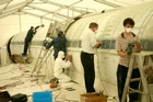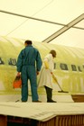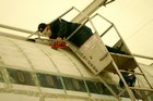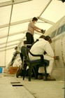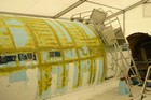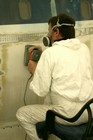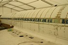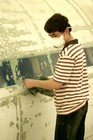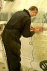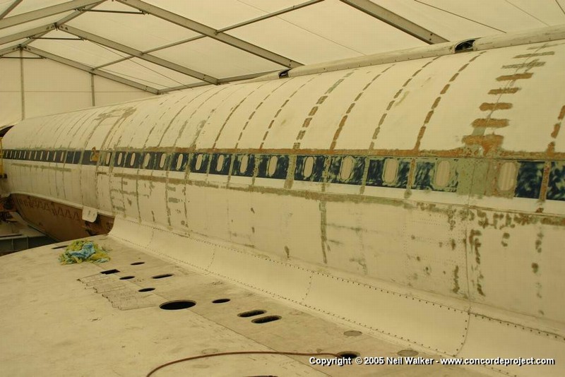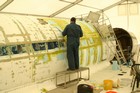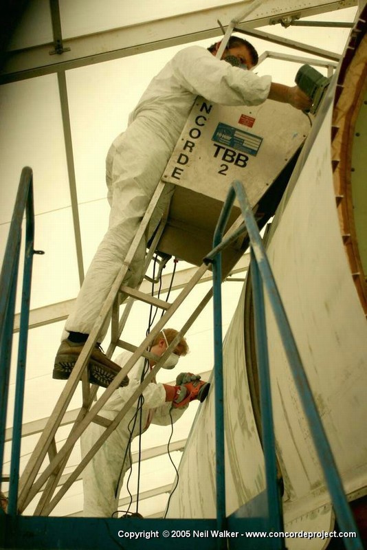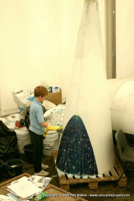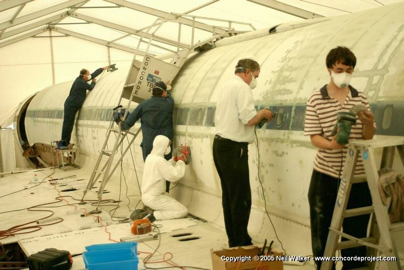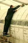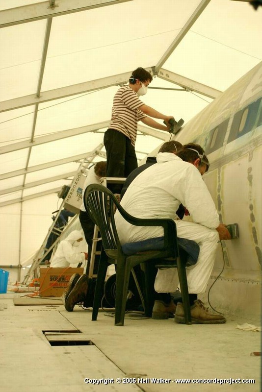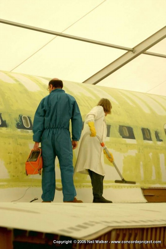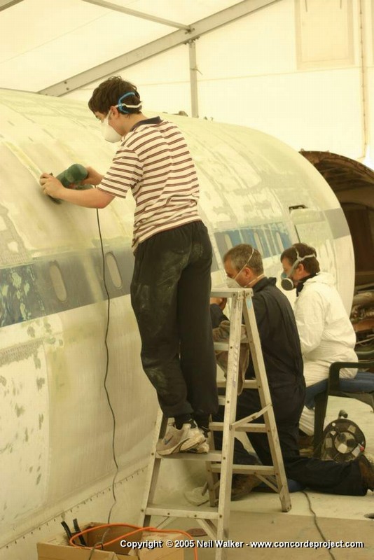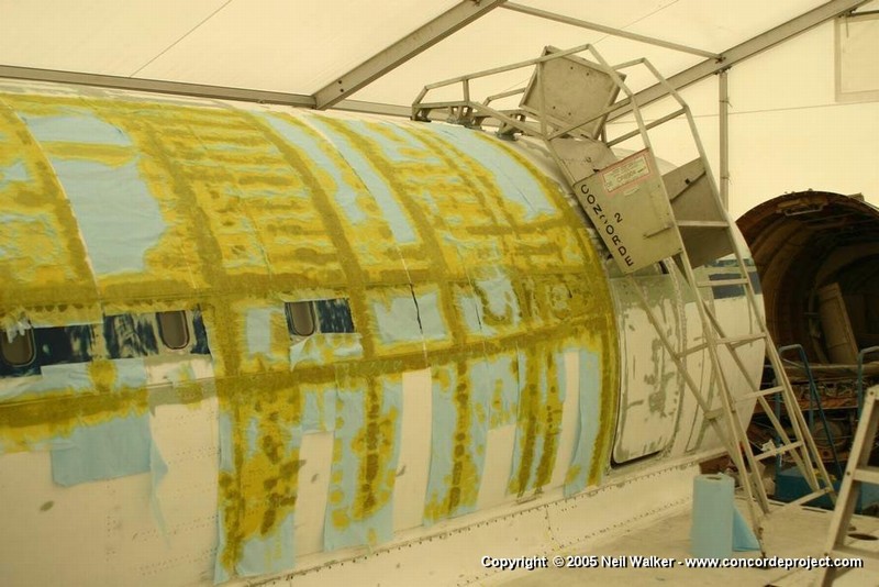 Sanding the centre fuselage and applying Alochrom (a corrosion-resistant protective coating for aluminium).