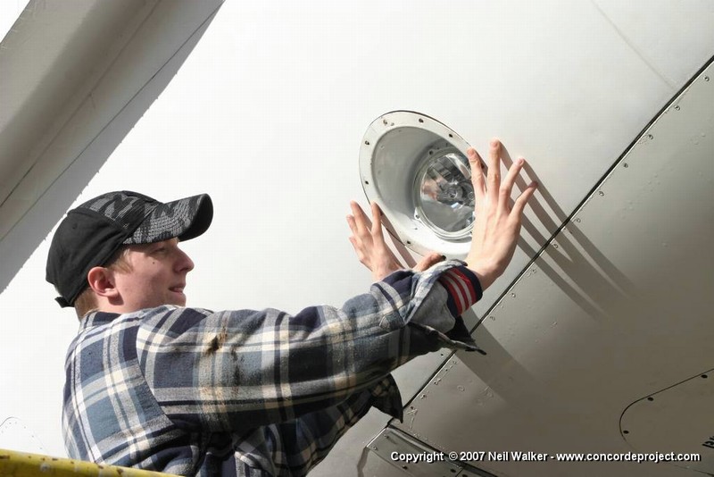 Fitting landing lights and in-house manufactured engine blanking panels.