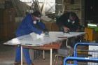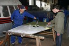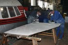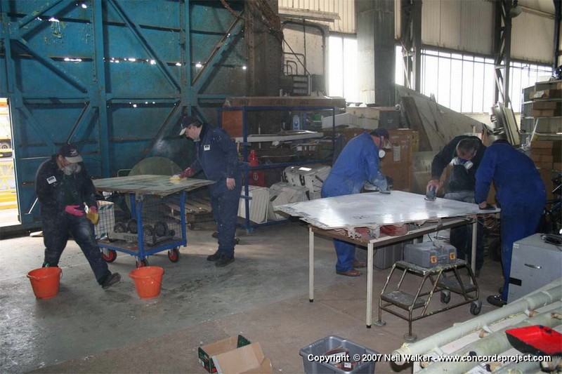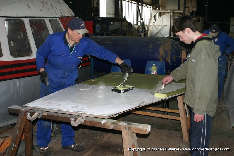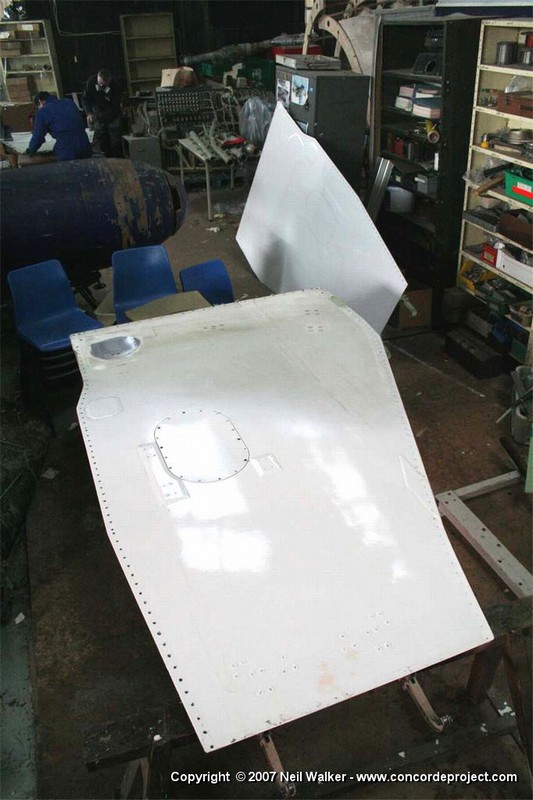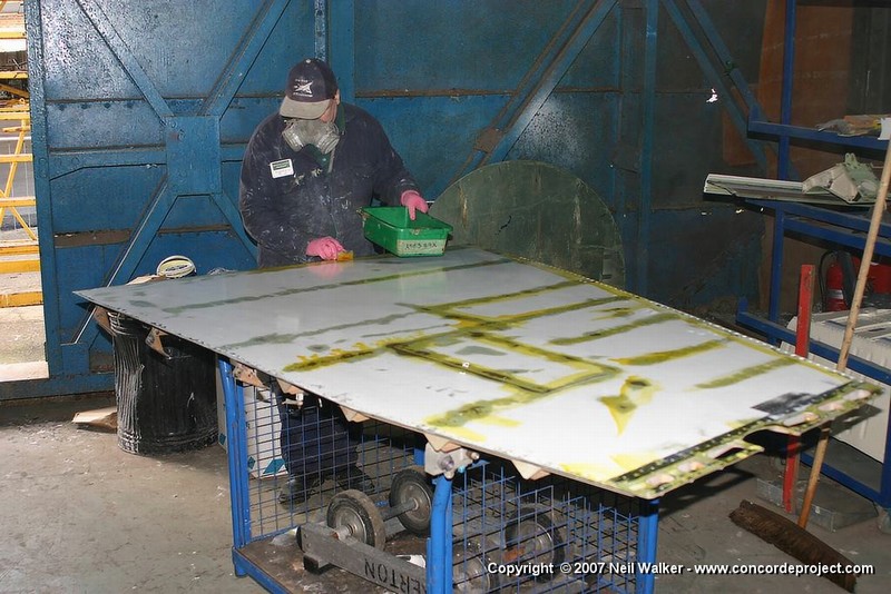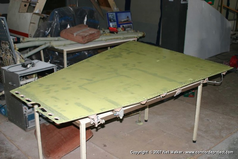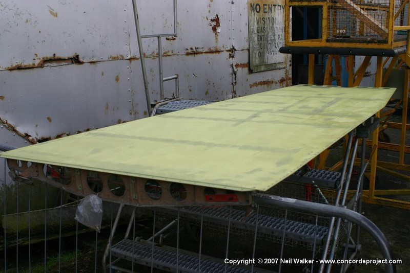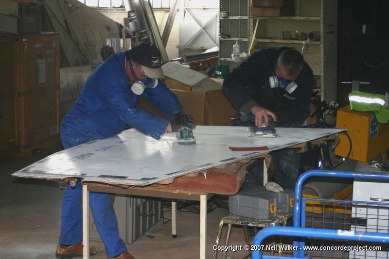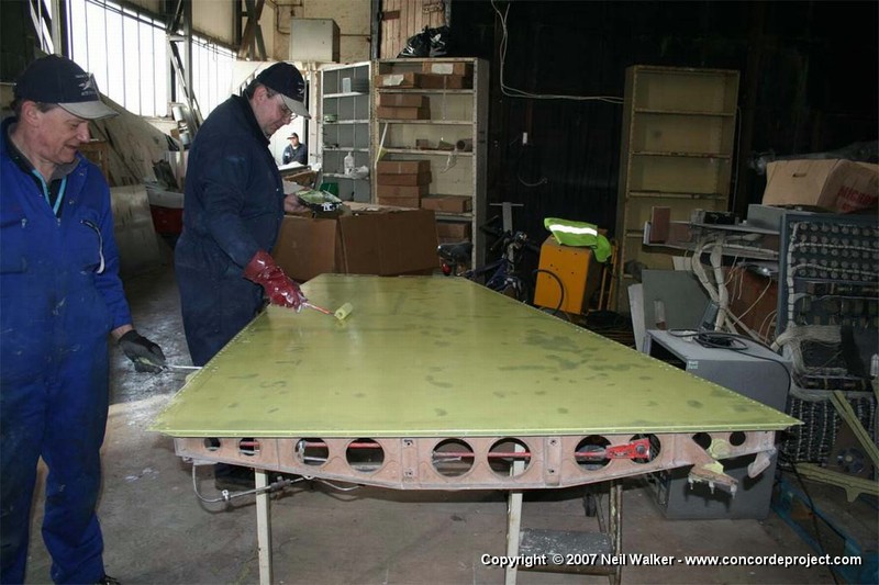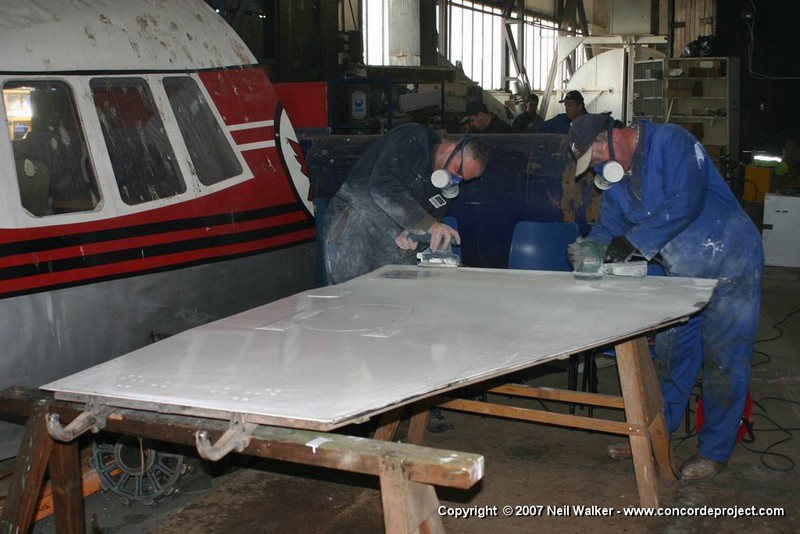 The main landing gear access panels (which are fitted on top of the wings) are sanded, Alochromed and primed.