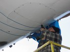 UniS volunteers painting the underside of the wings in the area above where the engine intakes will be fitted, and the fitting of belly panels