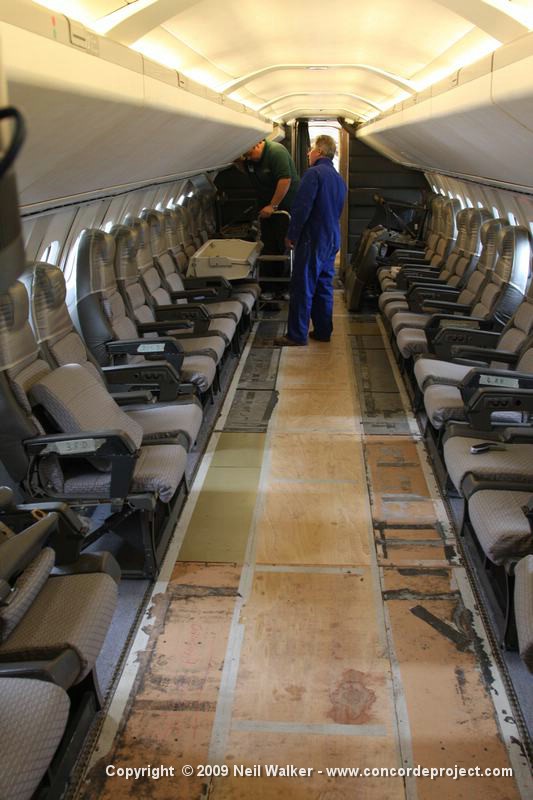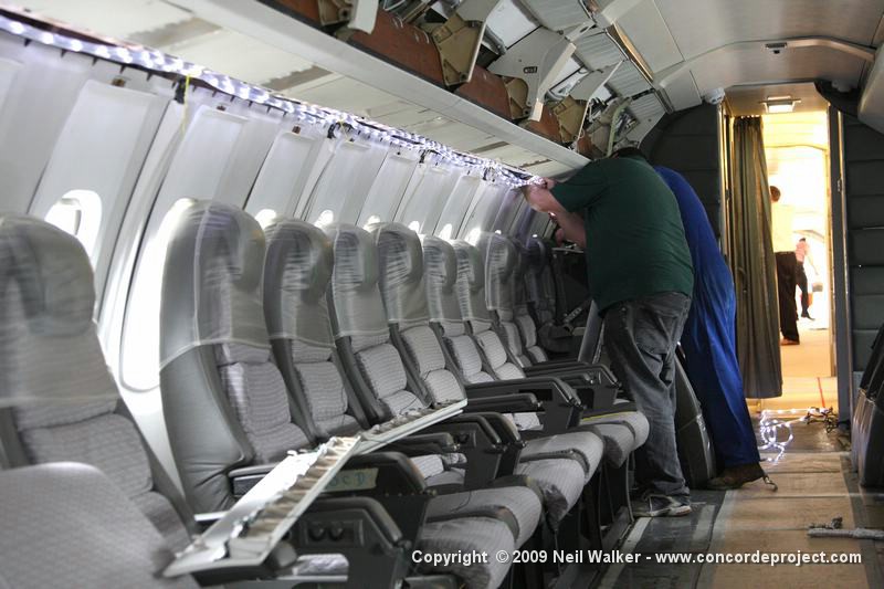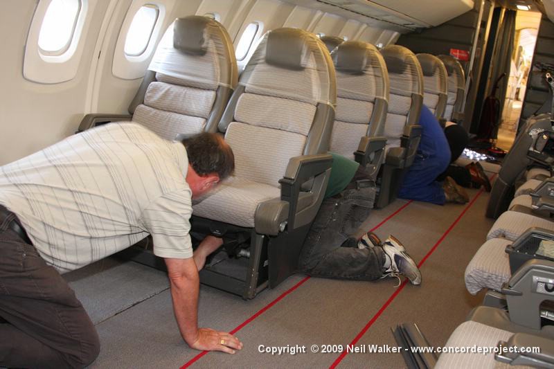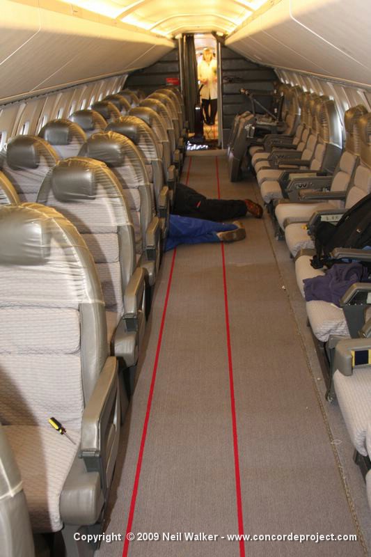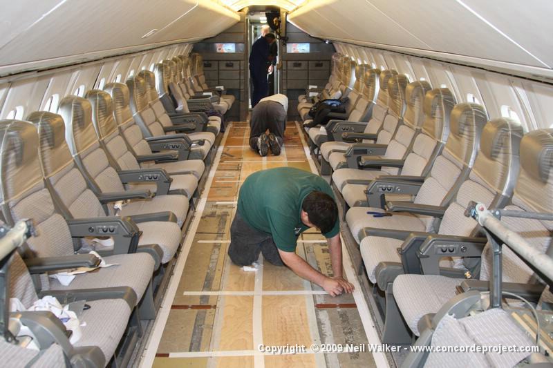 Fitting a new carpet inside DG's cabin. This has the correct double red strip as found in British Airways Concordes in the 1990s.