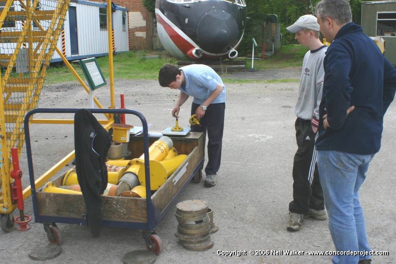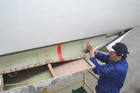 Fitting aft fuselage fairings. Note: the green panels with the red stripe are from the ex-fatigue test airframe and are being used to replace some of DG's missing fairings. Also, installing some tooling and equipment in the forward cargo hold to act as ballast.