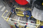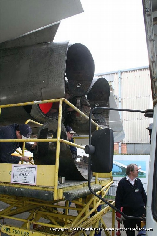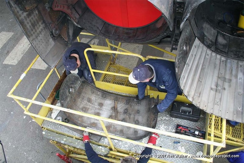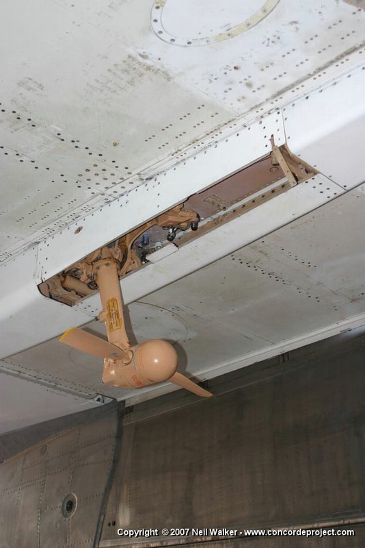 The newly fitted Ram Air Turbine (RAT) and fitting the last thrust reverse bucket.