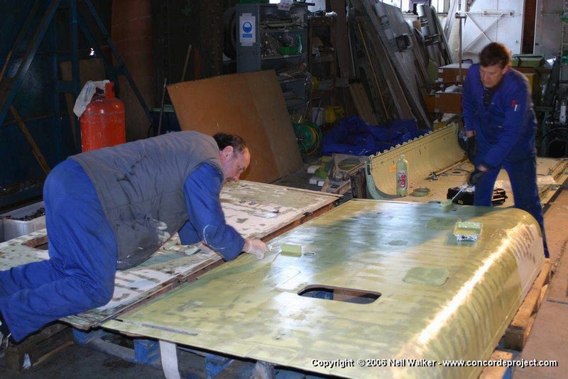 Working on engine bay doors, the tail cone and aft fuselage fairings.