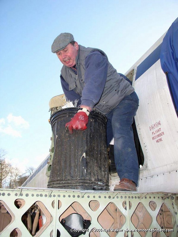 Removing years of accumulated rubbish from inside DG's cabin.