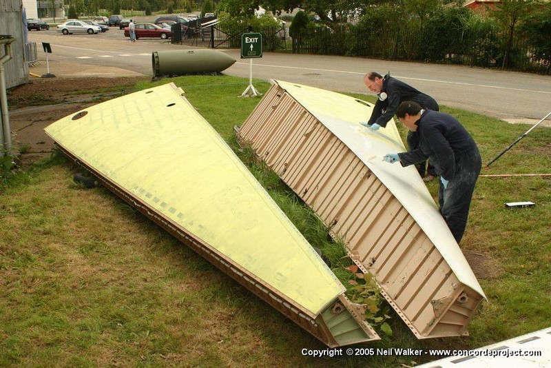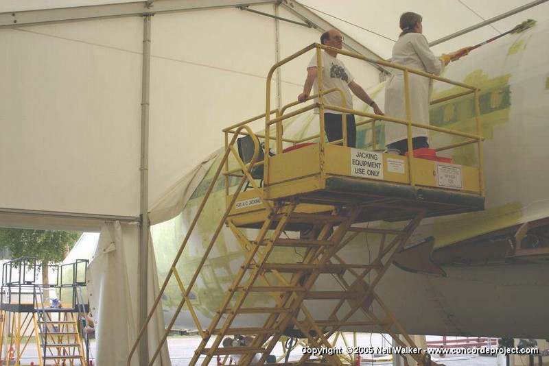 Sanding, priming and painting the forward wing sections and the forward fuselage.
