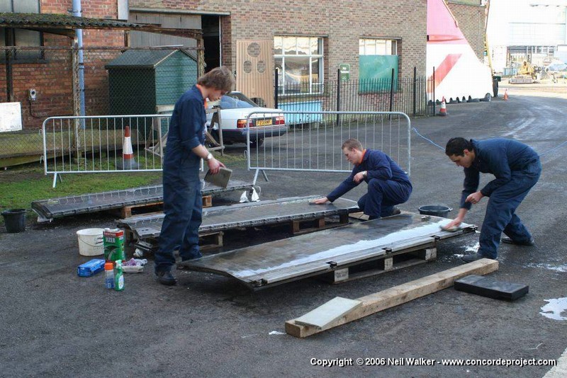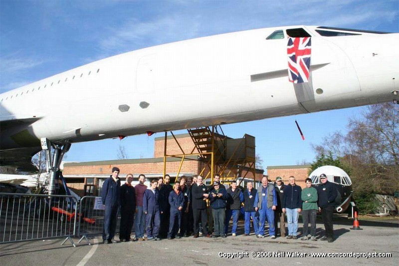 Work on engine bay doors, exterior panelling and volunteers mark the 30th anniversary of the inaugural flights of British Airways and Air France's Concorde services.