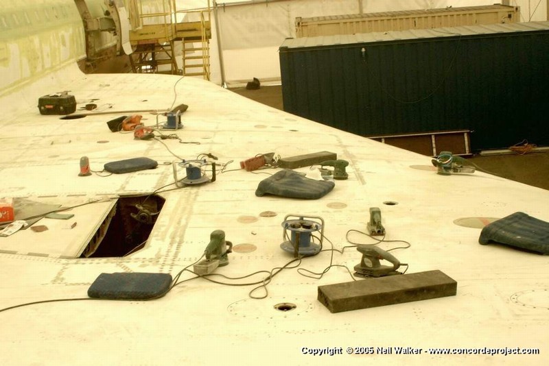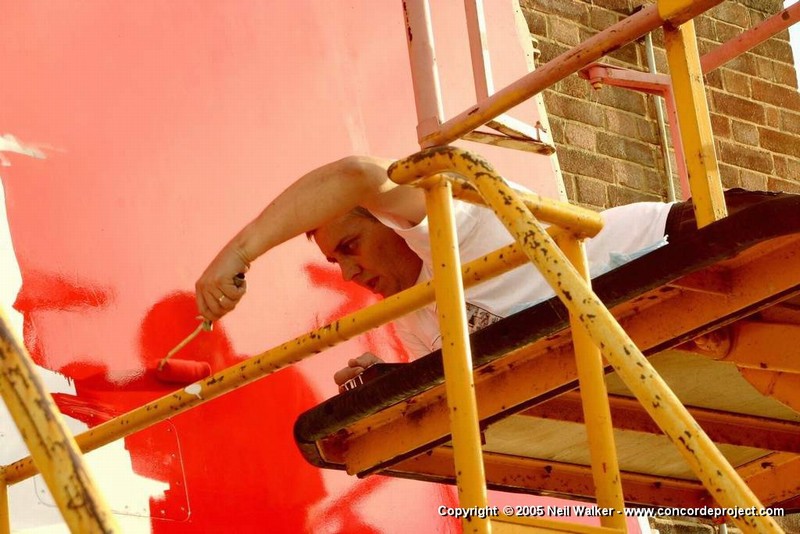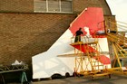 Painting the Union flag on the tail fin and sanding the tops of the wings.