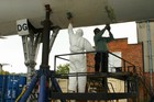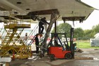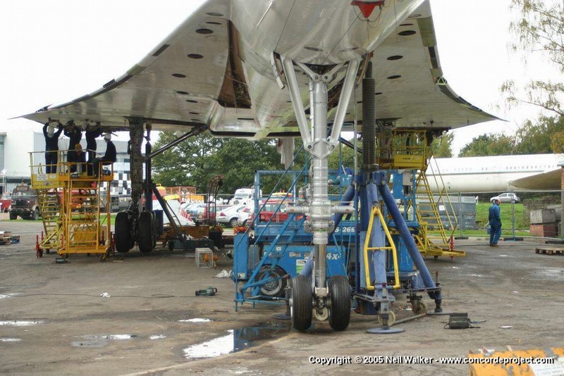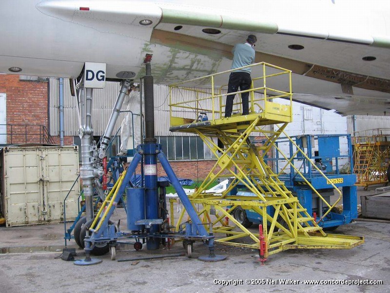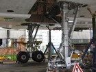Work underway to fit the main landing gear and installing cabin fixtures.