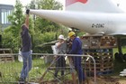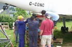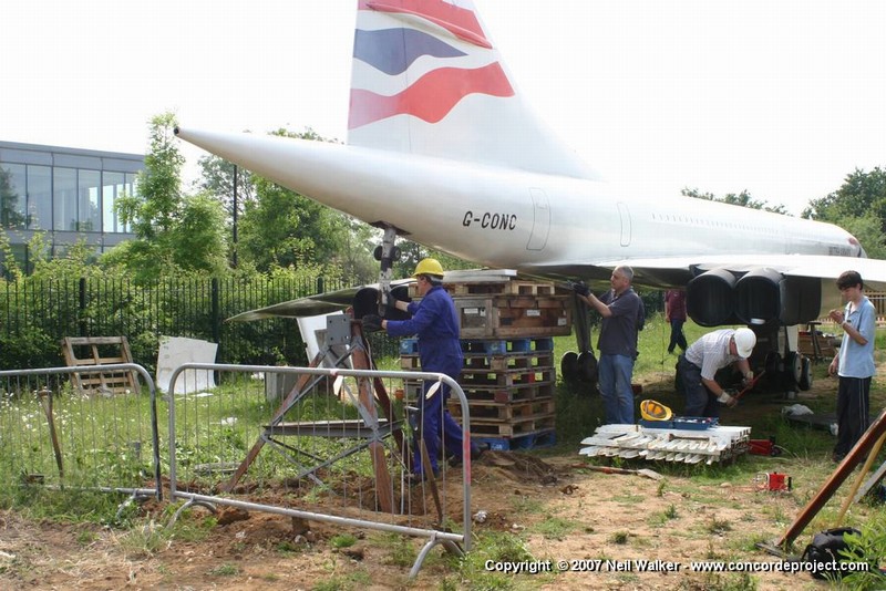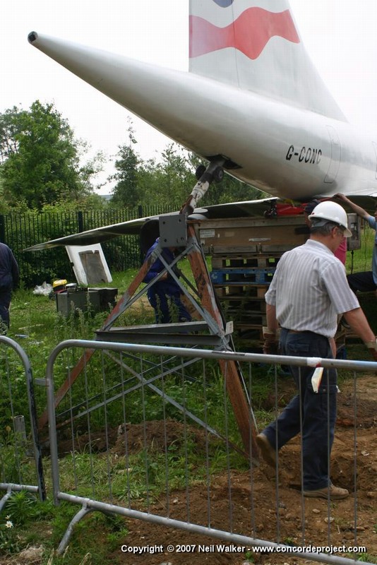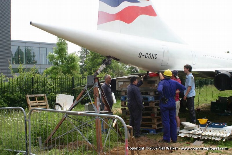 Fitting the rear support structure to G-CONC and shortening the nose landing gear leg.
