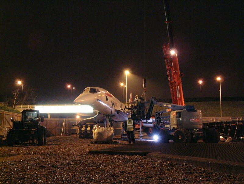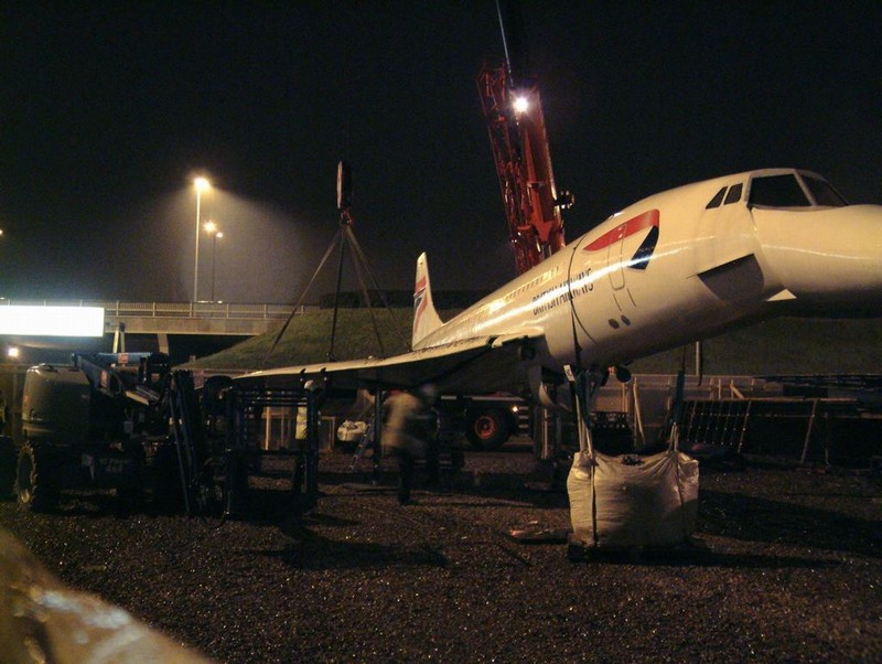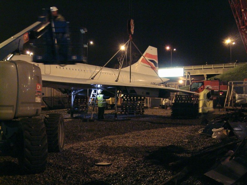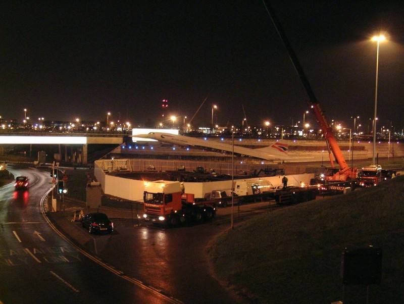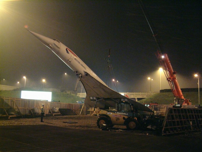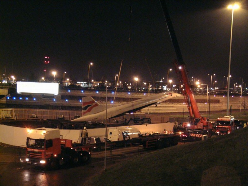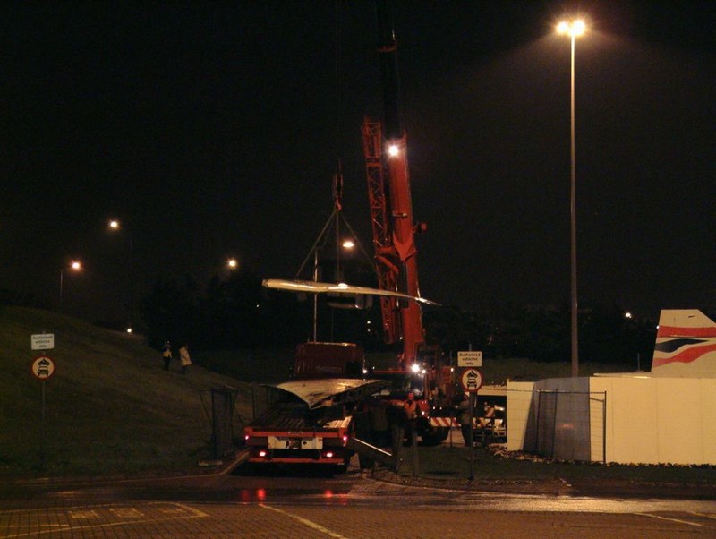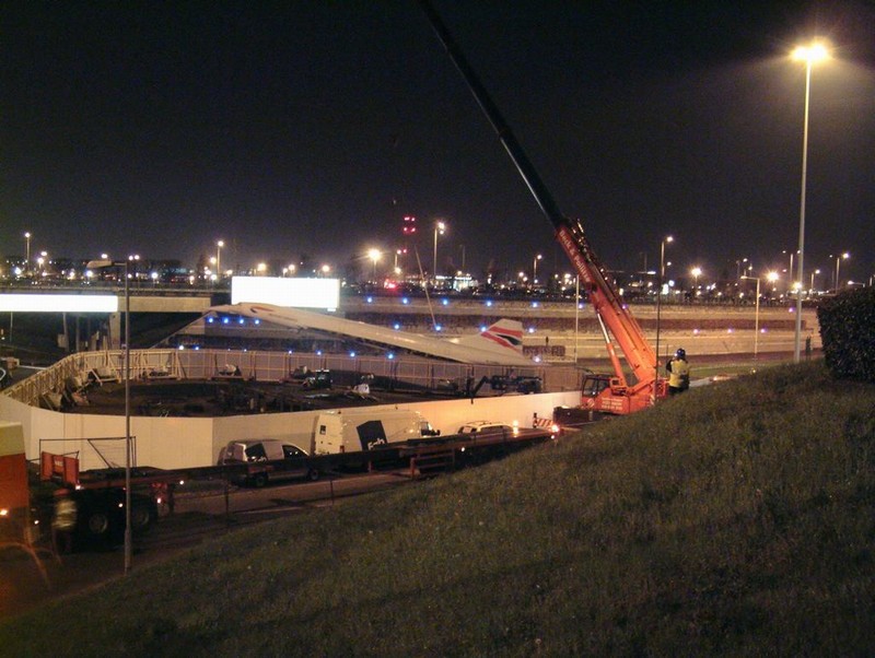 G-CONC is dismantled and moved from the roundabout at Heathrow airport to its new home at Brooklands Museum.