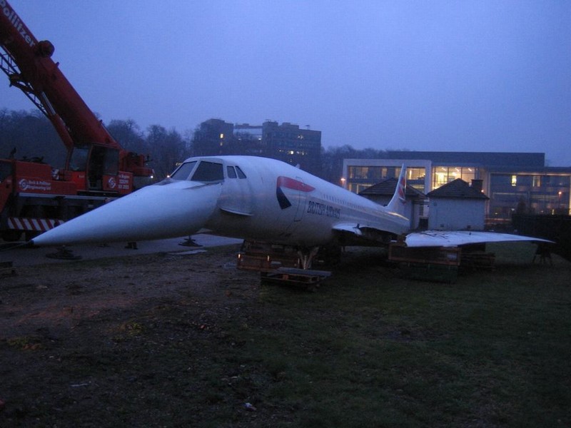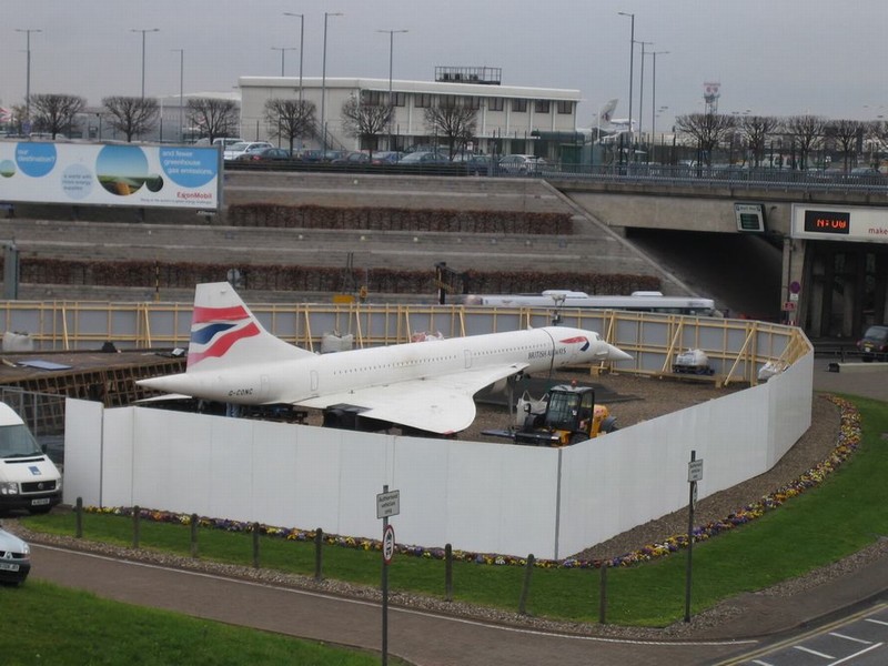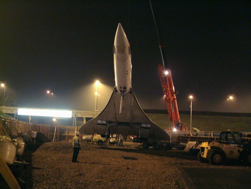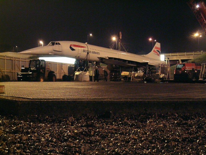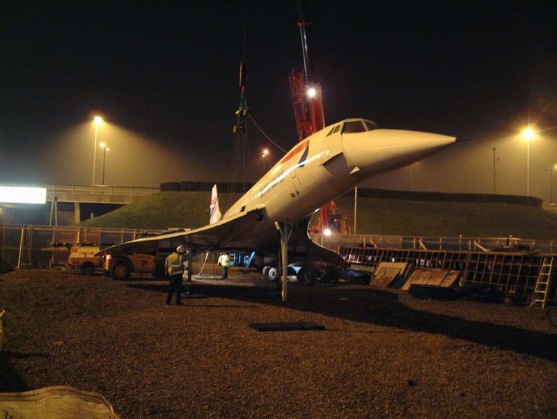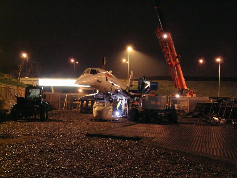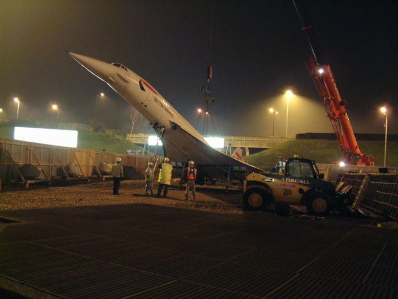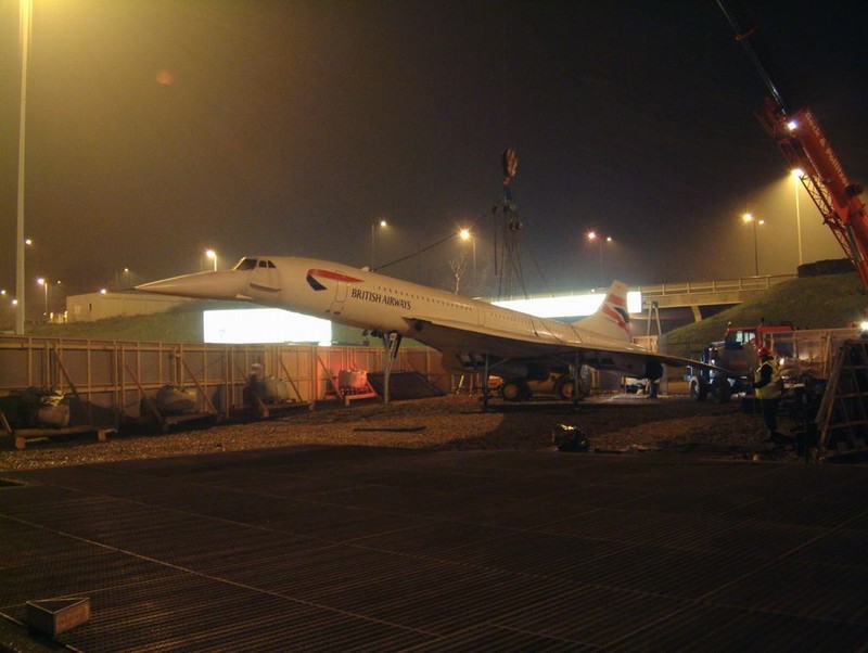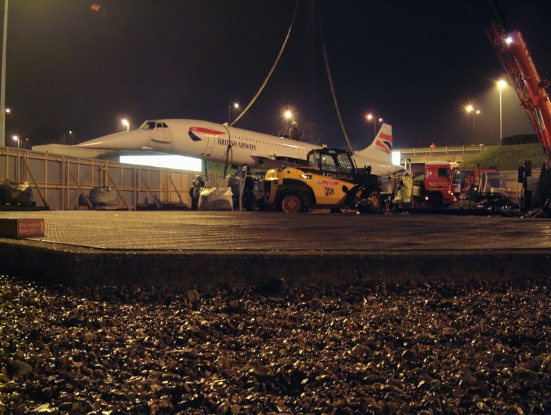 G-CONC is dismantled and moved from the roundabout at Heathrow airport to its new home at Brooklands Museum.