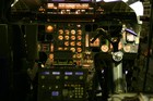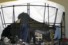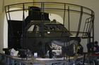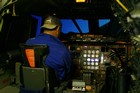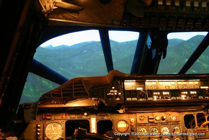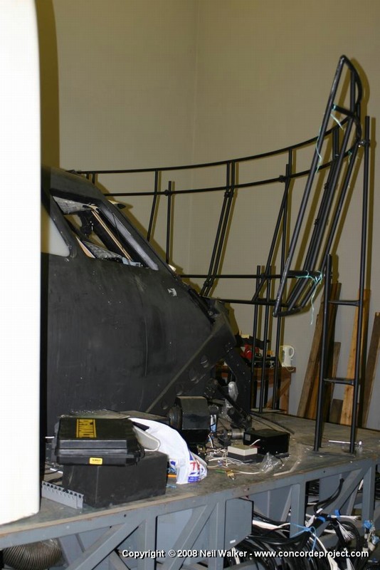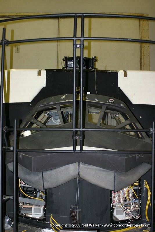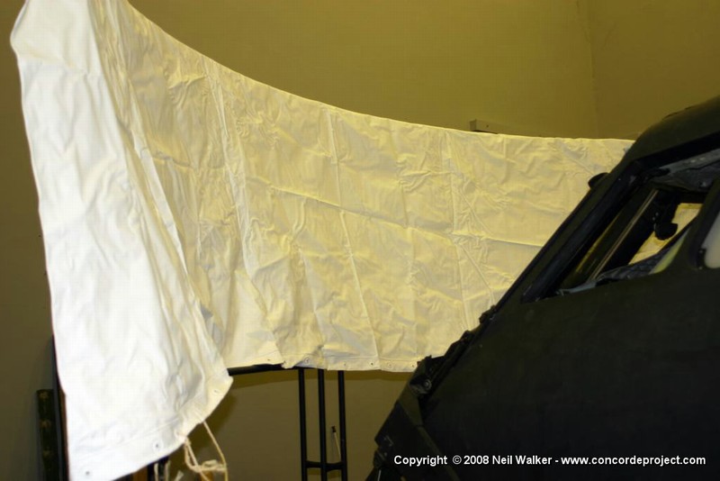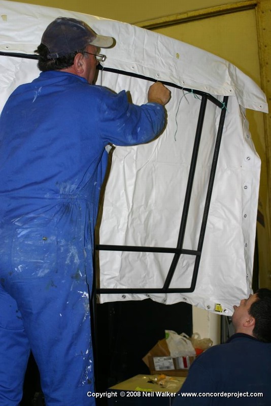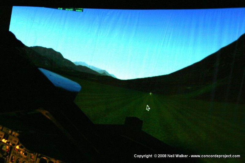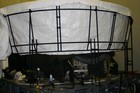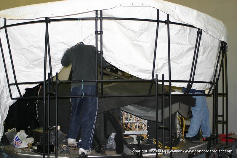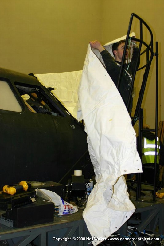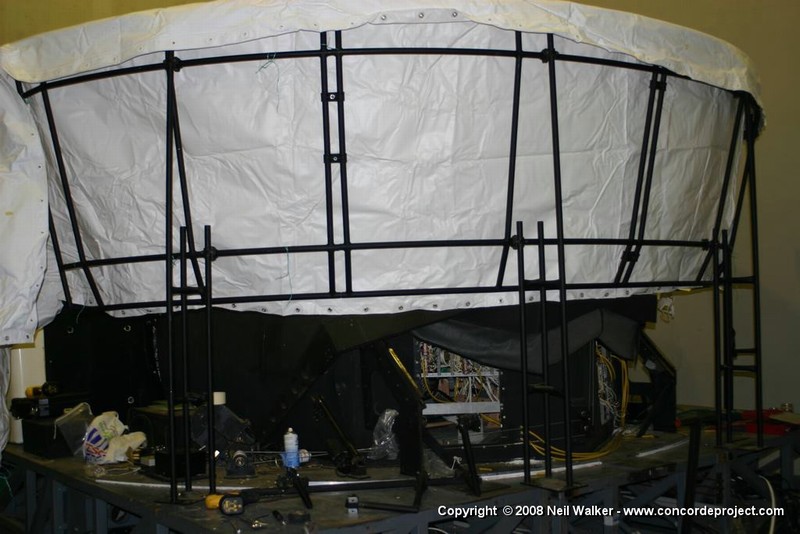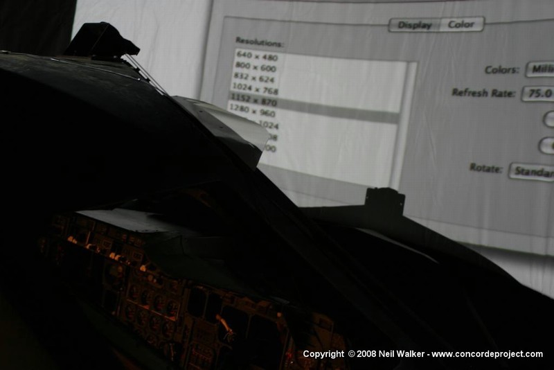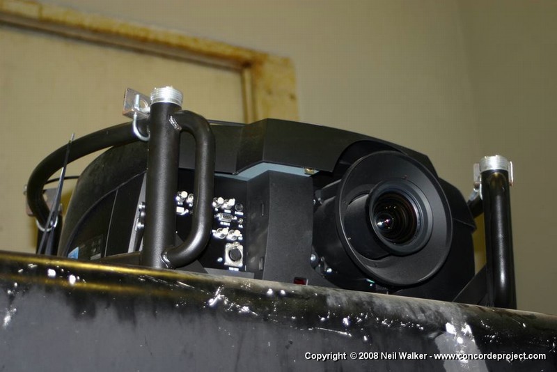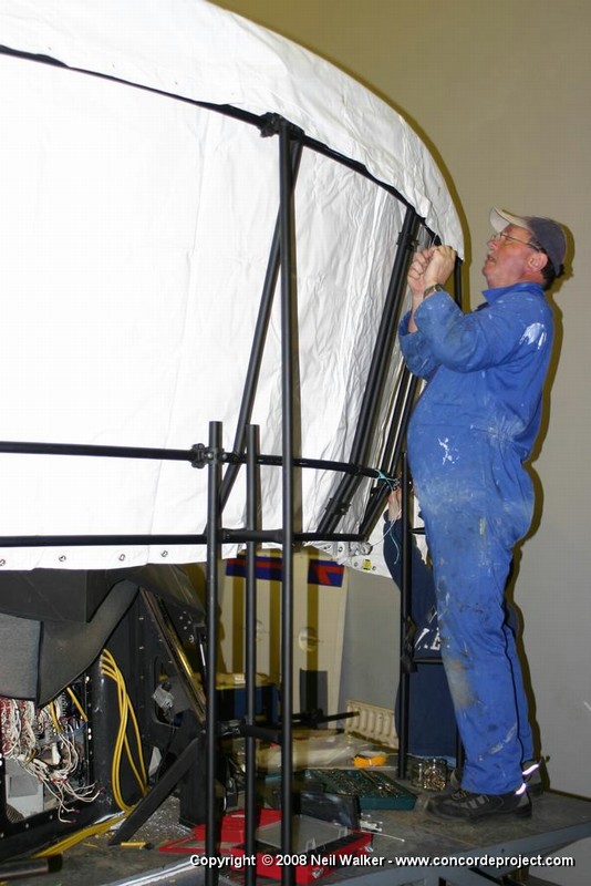Setting up a canvas screen and single projector for use with the Concorde simulator.