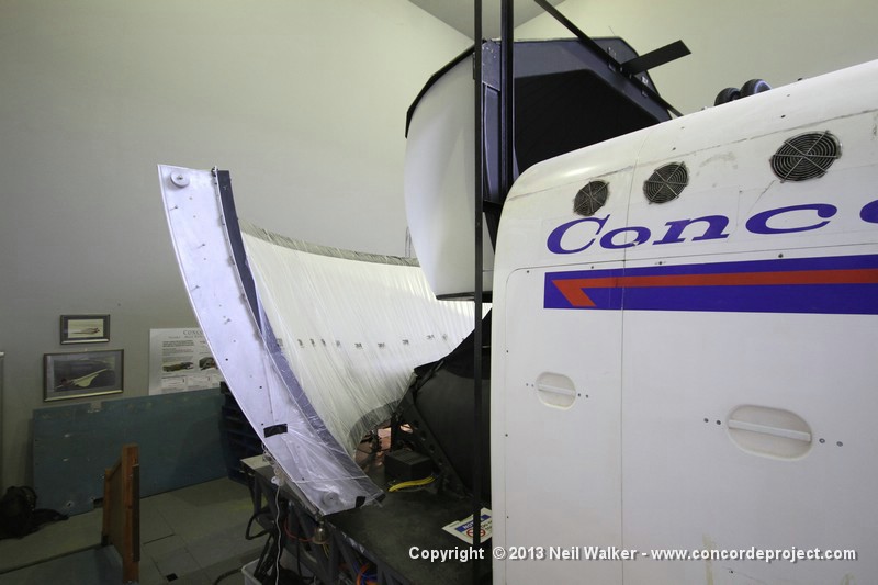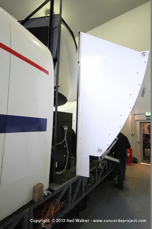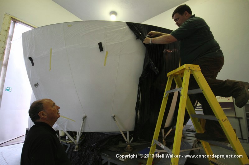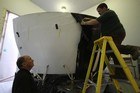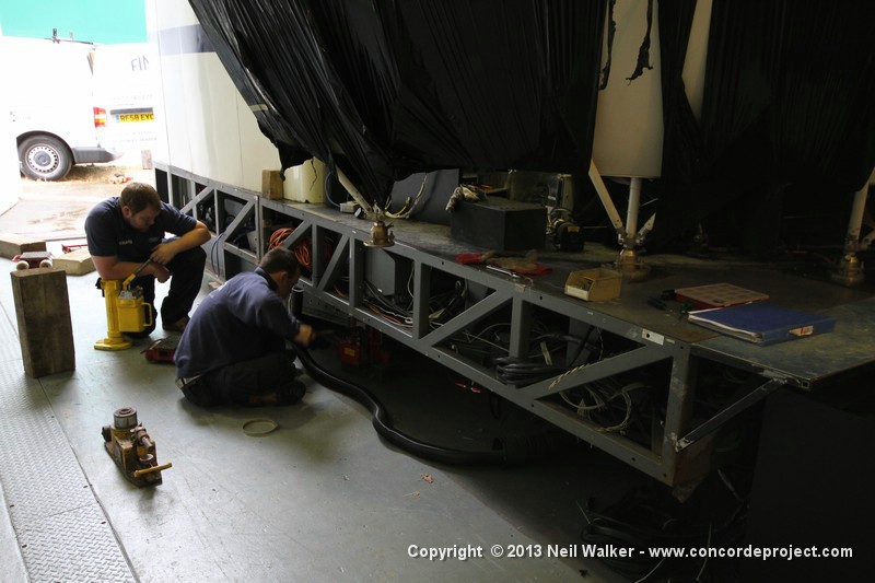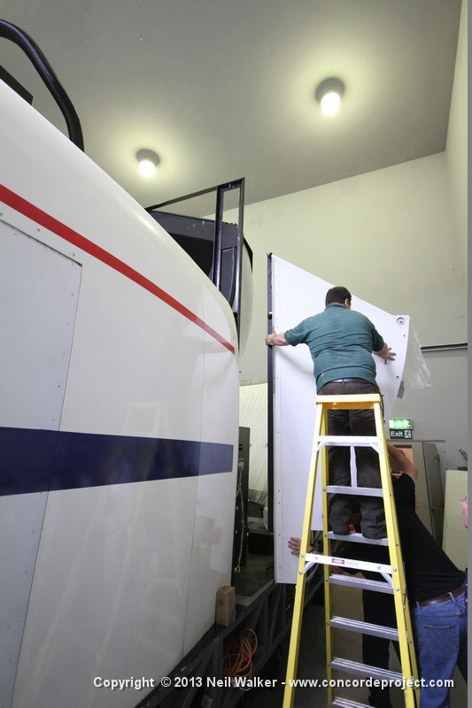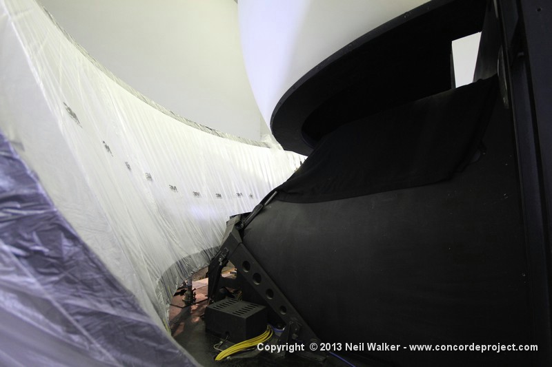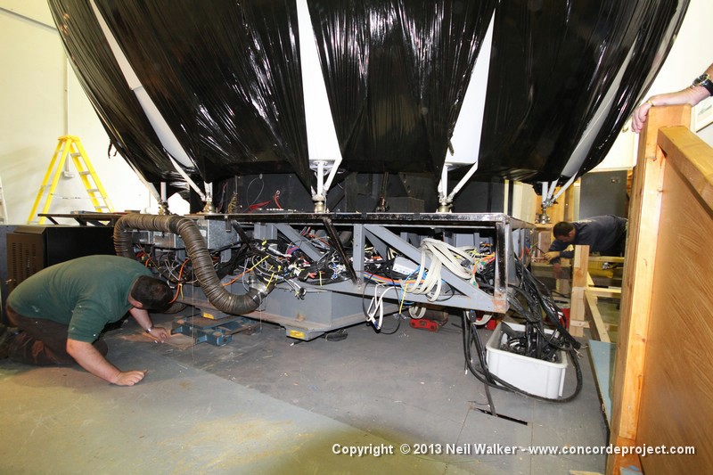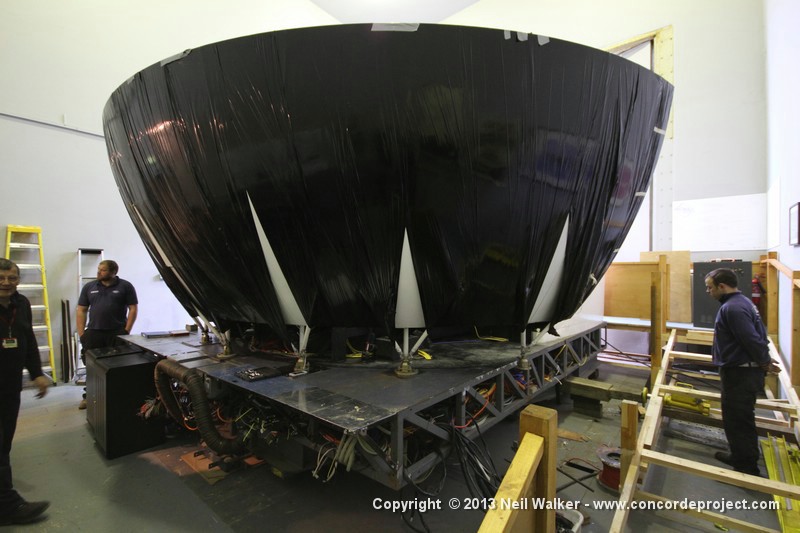 Moving the simulator to accomodate the extra width of the mirror and the fitting of the so-called 'petals' to the top of the mirror and back projection screen.