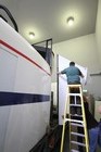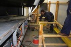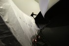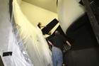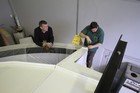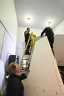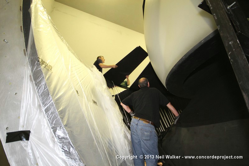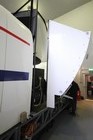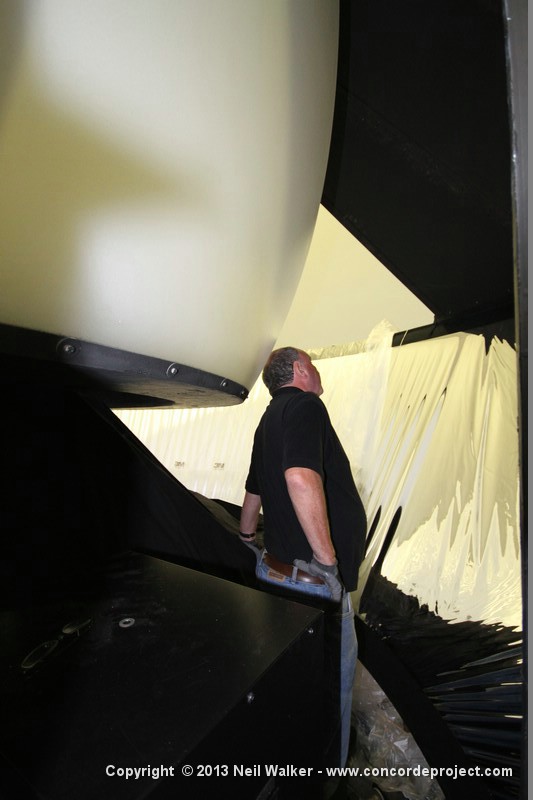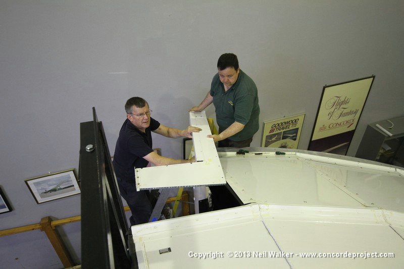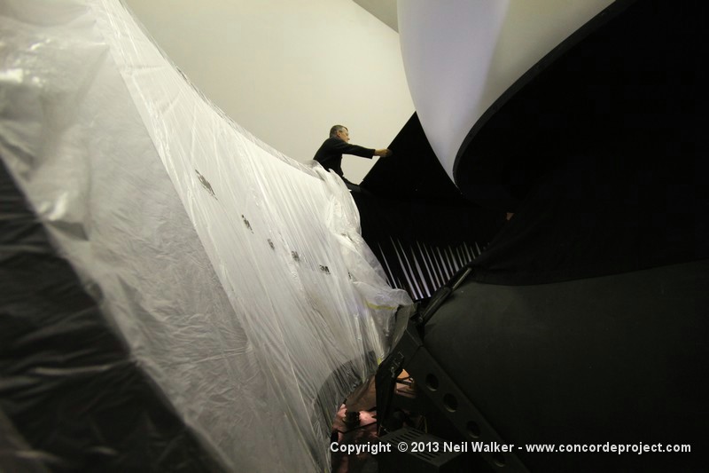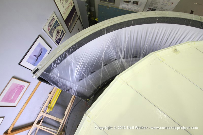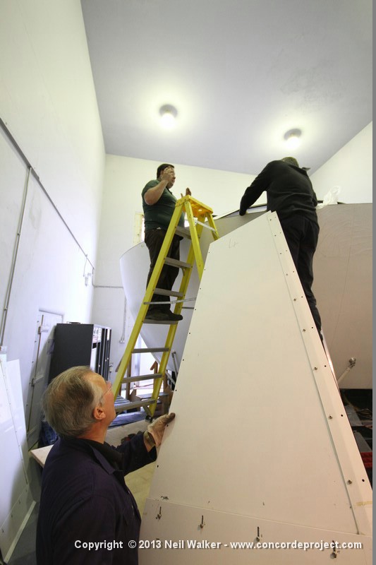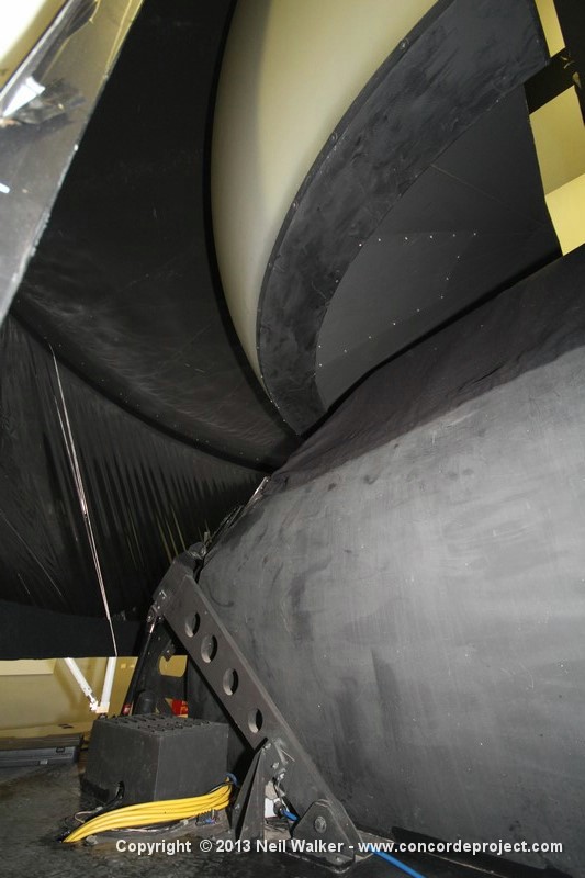 Moving the simulator to accomodate the extra width of the mirror and the fitting of the so-called 'petals' to the top of the mirror and back projection screen.